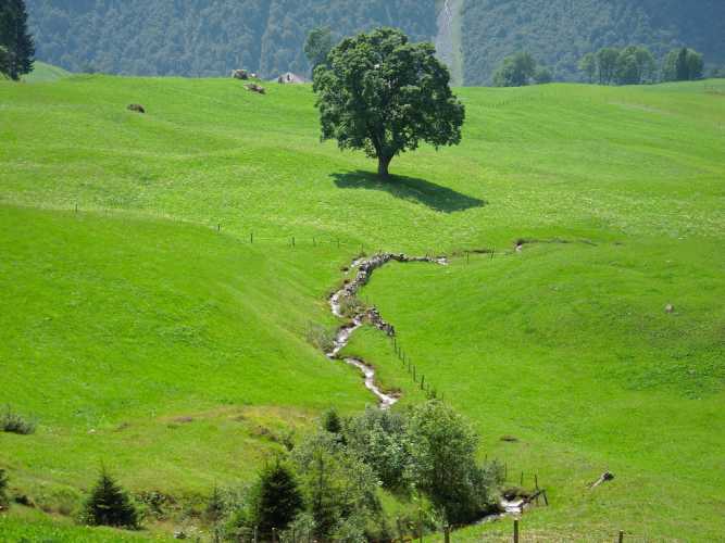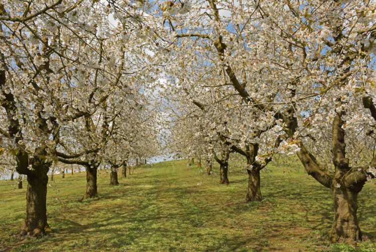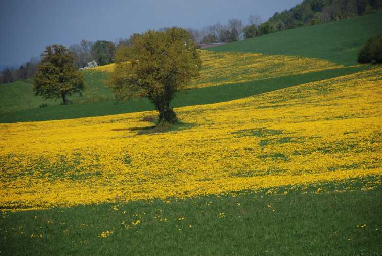 Trees, flowers, grass